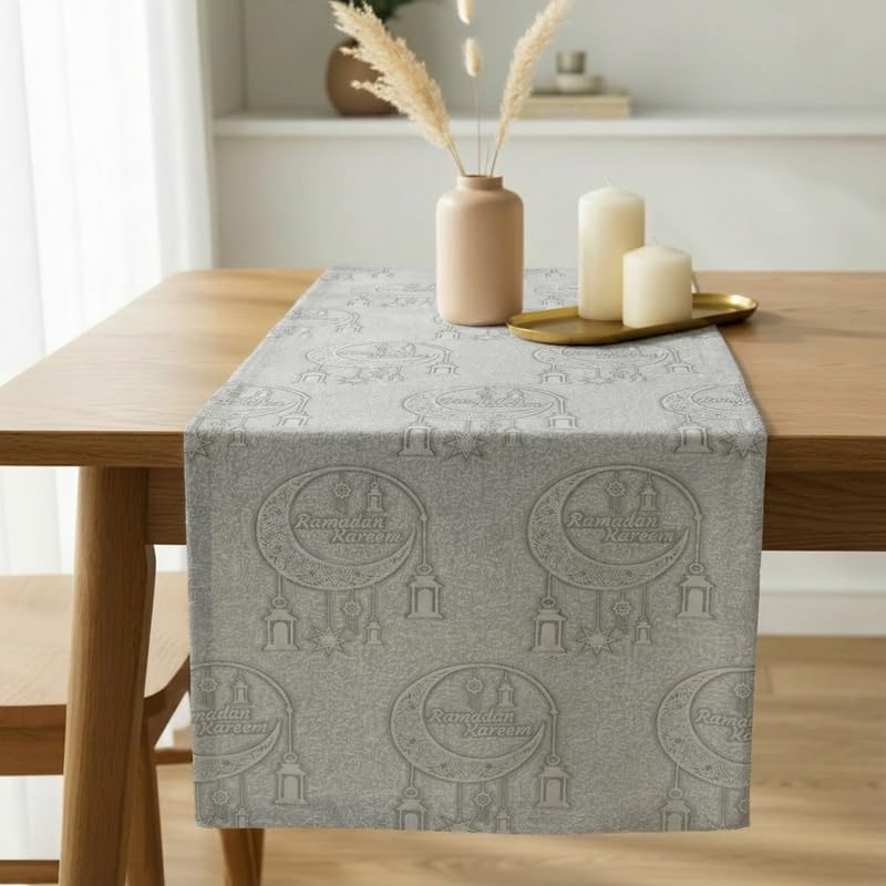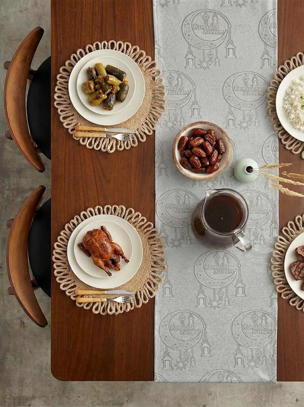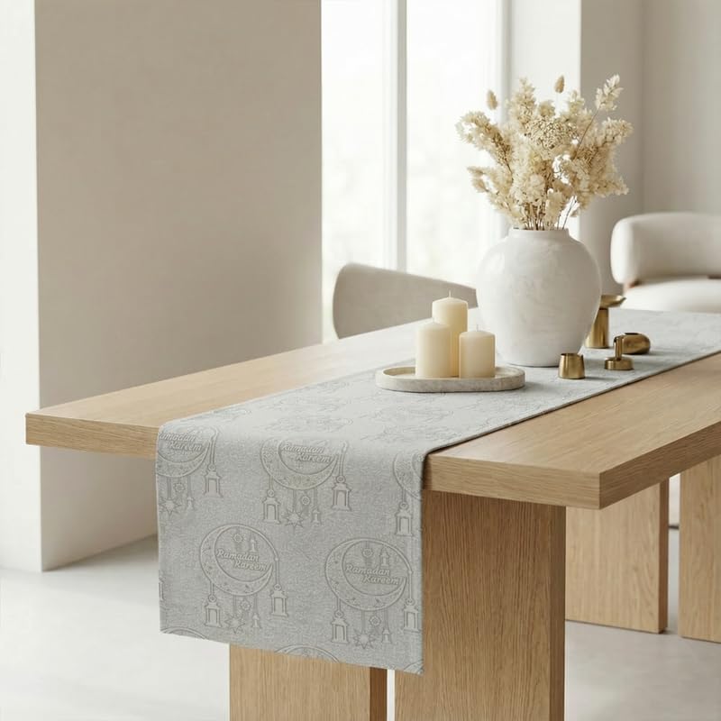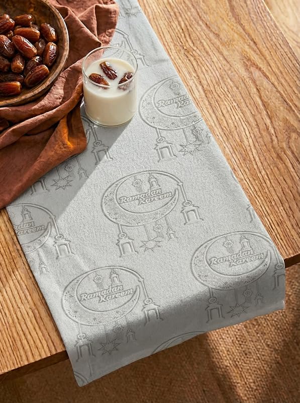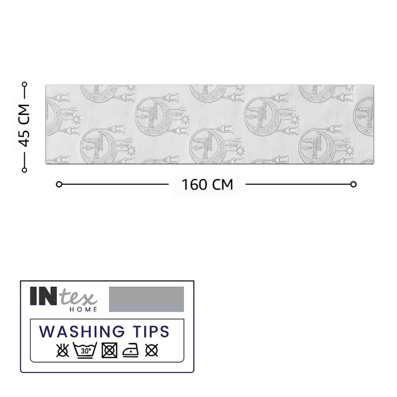 INTex HOME - مفرش طاولة رمضان فايبز عالي الجودة من انتكس هوم (طرف مستقيم) - 45 × 160 سم - اوف وايت × رمادي - ملمس ممتاز ناعم ومقاوم للتجاعيد