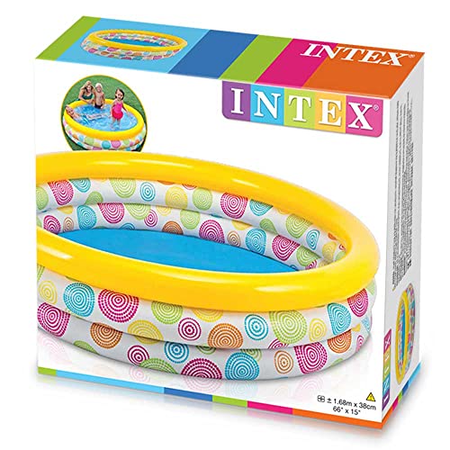 Intex - حوض سباحة للاطفال مكون من 3 حلقات، متعدد الالوان من انتكس، مقاس 168× 38 سم، موديل 58449، بلاستيك