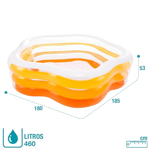 - حوض سباحة صغير على شكل خماسي الأضلاع بحوائط جانبية شفافة وعوارض متعددة الألوان. يحتوي على أرضية قابلة للنفخ لمزيد من الراحة والحماية. يتضمن رقعة إصلاح. العلامة التجارية: انتيكس، أنشطة اللعب الخارجية: حمامات سباحة، رقم الموديل: 56495، الفئة المستهدفة: للجنسين، العمر الموصى به: 5 إلى 8 سنوات، اللون: أزرق وأبيض، سعة المياه: 466 لتر