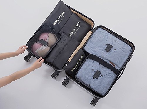 - 7 منظمات للتعبئة: 3 × مكعبات تعبئة و3 × أكياس شبكية مضغوطة و1 × شنطة أحذية. ويفصل بين ملابسك النظيفة والمتسخة وأداة الاستحمام، مما يجعل سفرك في غاية السهولة والراحة.