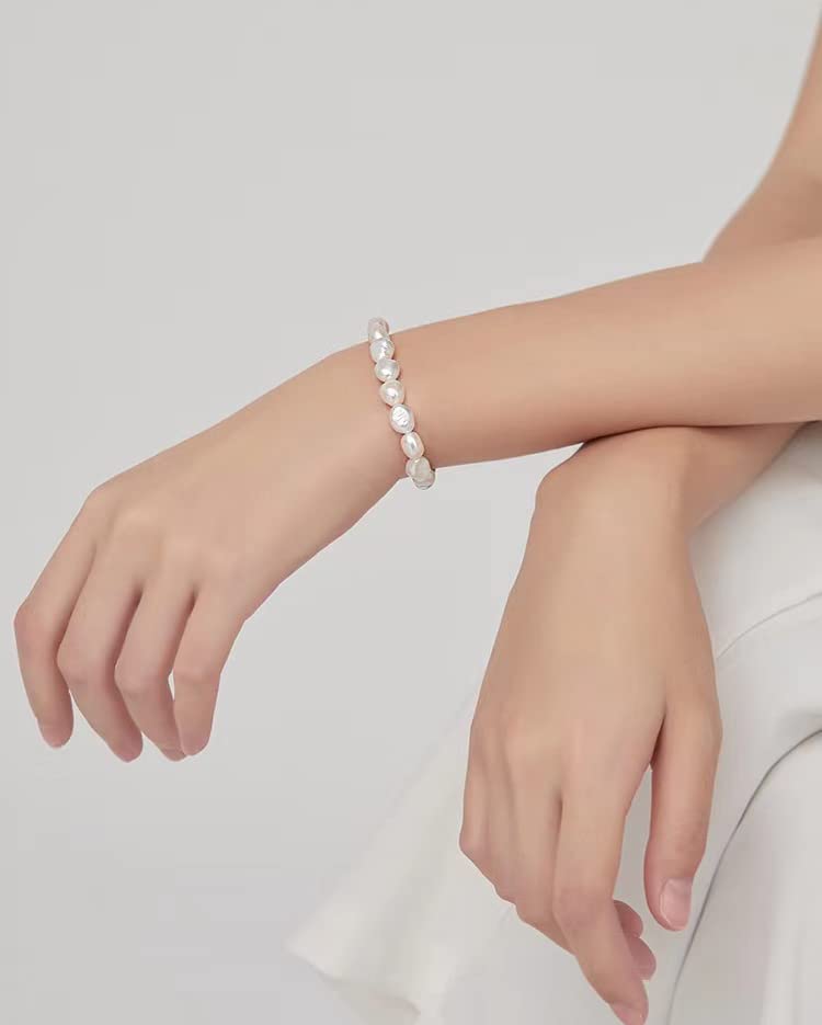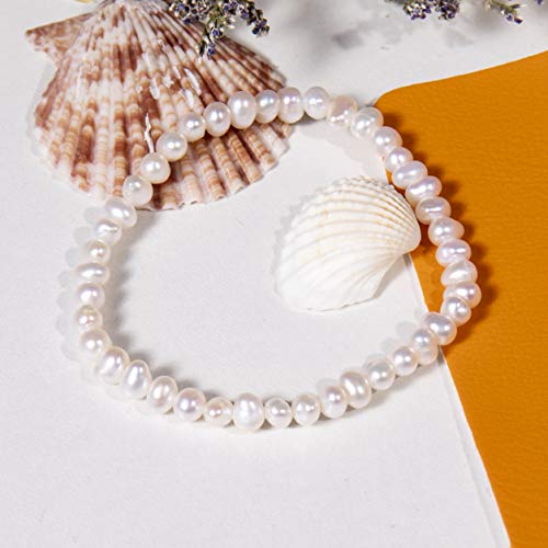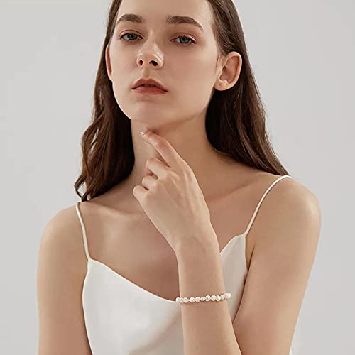 InzheG - InzheG Gold Pearl Braided Bracelet 14K Gold Plated Handmade Genuine Freshwater Cultured Pearls White Beaded Bracelet Chain Dainty Vintage Bridal Wedding for Women Girls