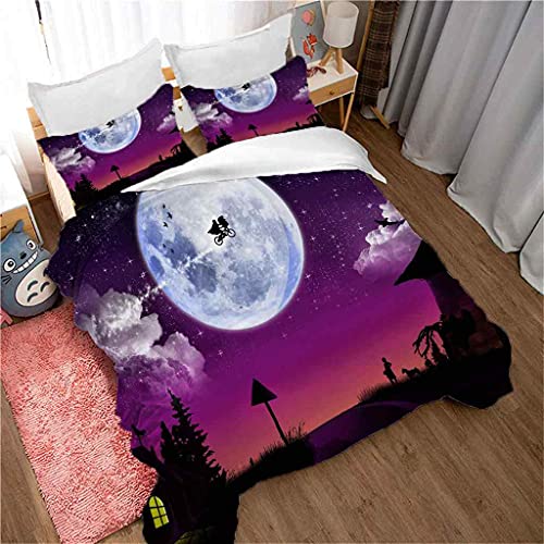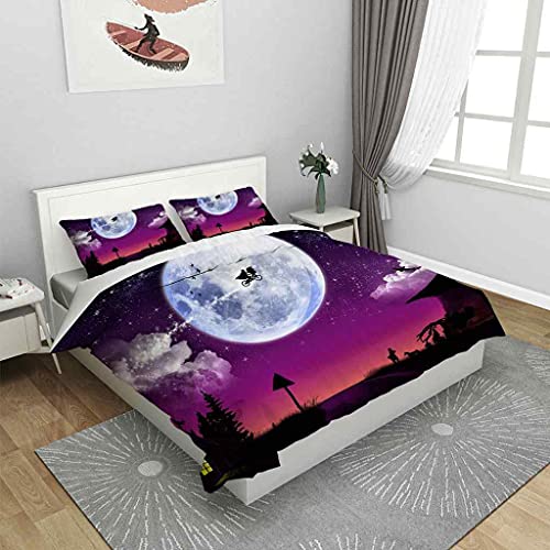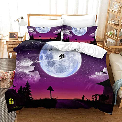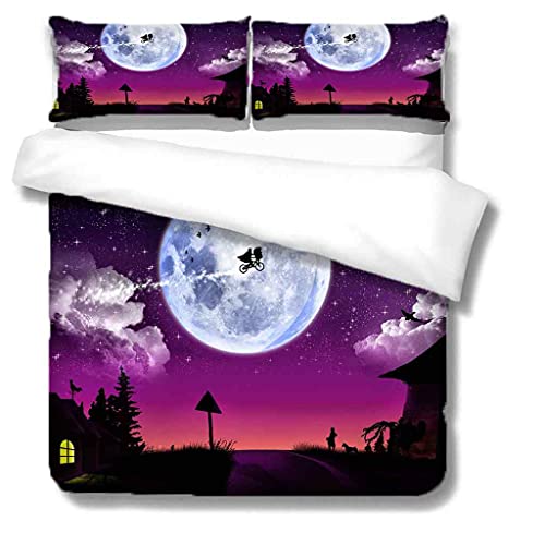 IOCXSO - طقم غطاء لحاف مفرد ثلاثي الابعاد بتصميم قمر كامل وسماء مرصعة بالنجوم من المايكروفايبر فائق النعومة ومضاد للحساسية يتضمن 1 غطاء لحاف بسحاب و2 غطاء وسادة مقاس 50 × 75 سم من اي او سي اكس اس او، طباعة