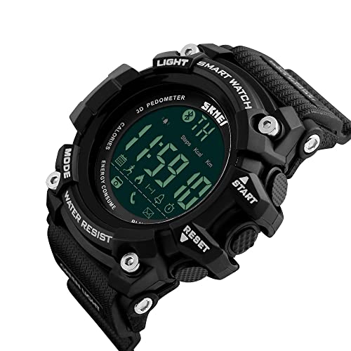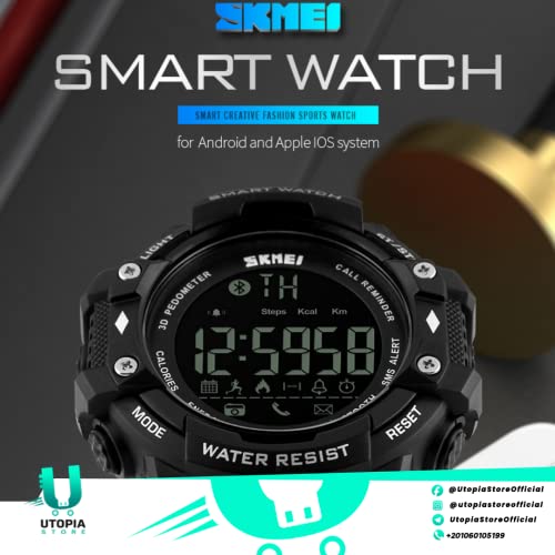 Generic - ساعة ذكية رياضية متوافقة مع اندرويد وiOS للرجال والنساء تدعم فن الخط وتشتمل على منبه وسوار مطاطي مرن عالي التحمل موديل 1227 اسود