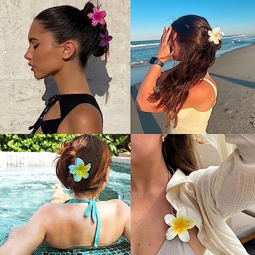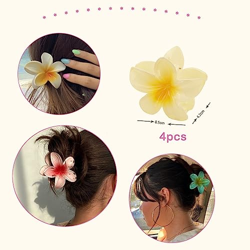 IOSPKKIO - مشابك شعر على شكل زهرة من 4 ألوان من ايوسبككيو®، مشابك شعر كبيرة لتثبيت قوي للشعر الكثيف، مشابك شعر غير قابلة للانزلاق للنساء، مشابك شعر على شكل زهرة هاواي