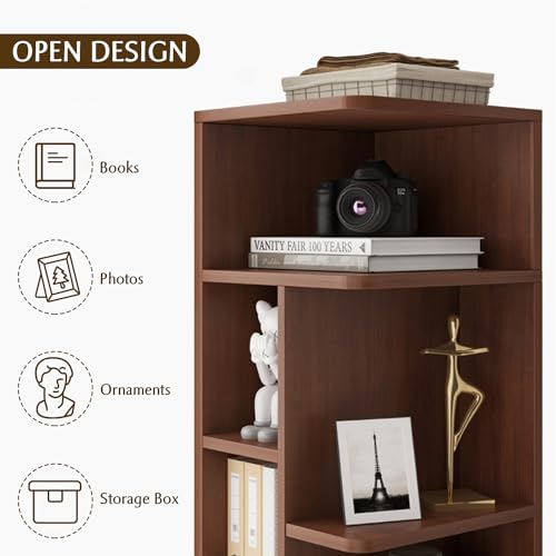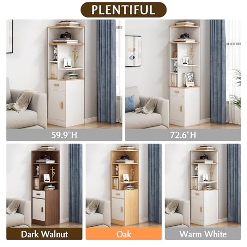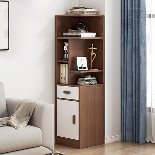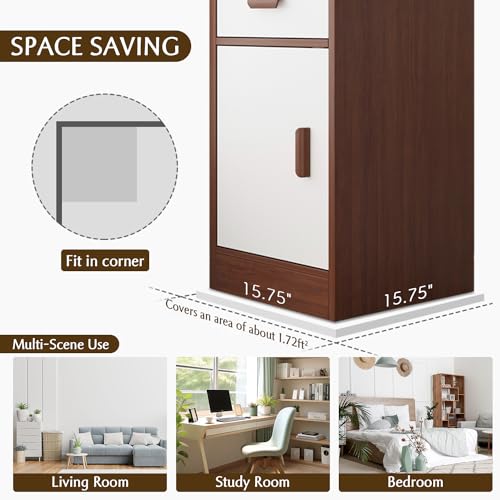 IOTXY - انترنتكس خزانة كتب طويلة ضيقة - رف نحيف قائم بذاته مع باب ودرج تخزين رفيعة للمساحات الصغيرة 60 انش خشب الجوز الداكن