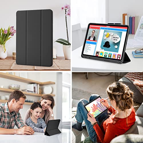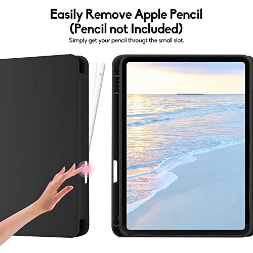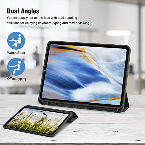 Palkitsee - جراب حماية اي باد الجيل العاشر 2022 مع حامل قلم 10.9 بوصة، خلفي ناعم من البولي يوريثين الحراري، ذكي ثلاثي الطيات لجهاز 10، خاصية التنبيه السكون التلقائي، أسود