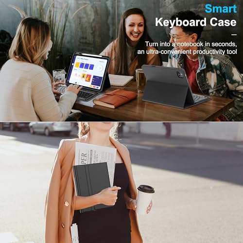 AMOUOGOEY - كيبورد أموجوي بتقنية بلوتوث قابل للفصل مع حامل قلم وشحن لاسلكي باللون الأسود متوافق مع التابلت