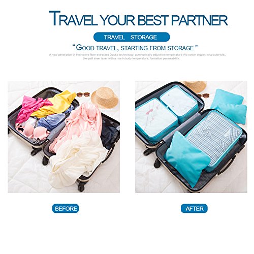 Eacam - مجموعة مكعبات شنط السفر من ايبيجا، منظمات تعبئة بلاستيكية ايكام مضغوطة وخفيفة الوزن للرجال والنساء - 6 قطع