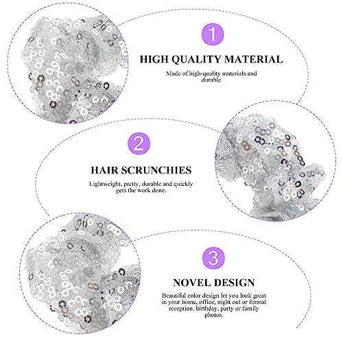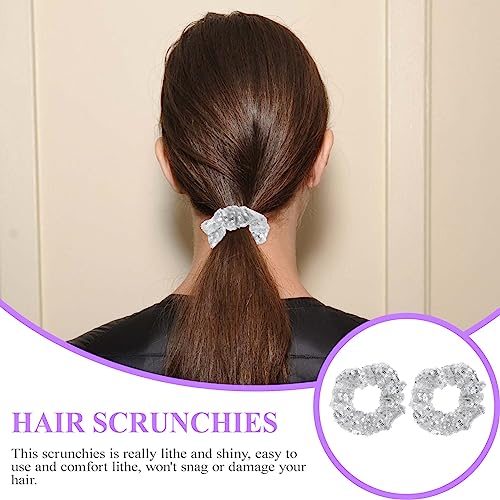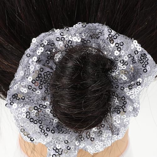 Ipetboom - مجموعة توك شعر مزينة بالترتر لعيد الميلاد المجيد، توك شعر أستك دائرية لامعة، ربطات شعر أستك لتسريحة ذيل الحصان من ايبتوبوم، لون فضي، عبوة من قطعتين