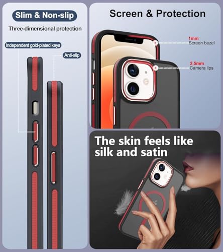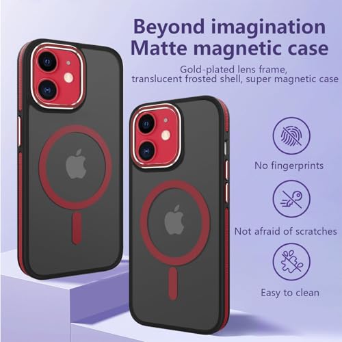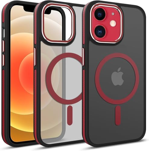 ELMO3EZZ - حافظة ايفون 12، حافظة ايفون 12 برو، [متوافقة مع ماج سيف] غطاء حماية مغناطيسي رفيع شفاف غير لامع مضاد للصدمات للنساء والرجال والبنات والاولاد لموبايل ايفون 12/ايفون 12 برو 6.1 انش (احمر)