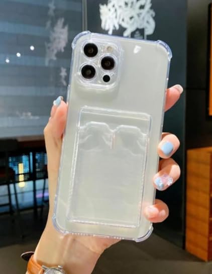 - جراب سيليكون شفاف مضاد للصدمات مع حامل بطاقات بتصميم زوايا مع حماية للكاميرا