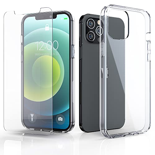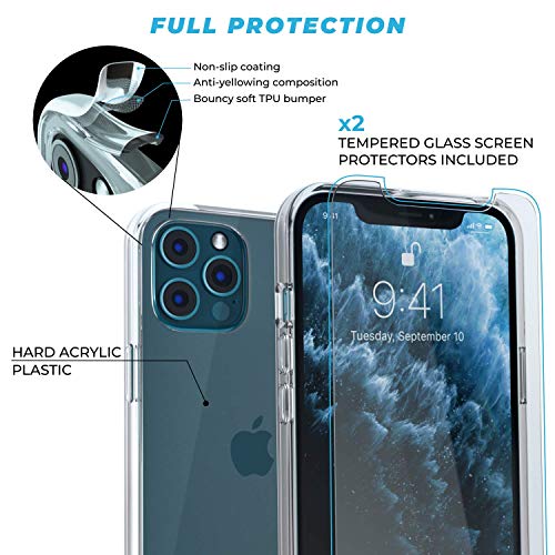 Nicexx - جراب مناسب لموبايل ايفون 12 برو ماكس (2020) مع 2× شاشة حماية من الزجاج المقوى| جراب شفاف كريستالي | جراب صلب مصنوع من البولي كربونات + ممتص صدمات مصنوع من السيليكون ويدعم تقنية الشحن اللاسلكي