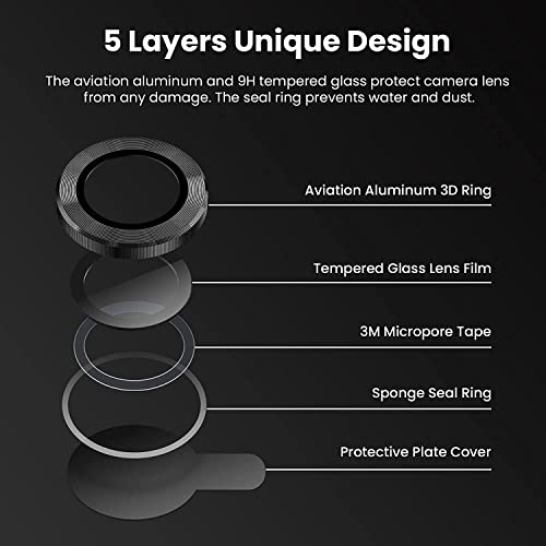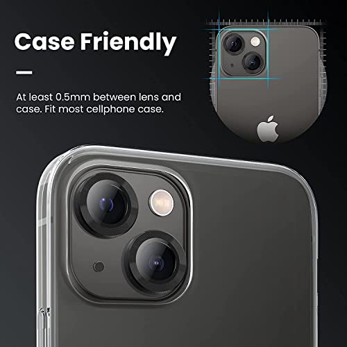 Generic - واقي لعدسات الكاميرا لموبايل ايفون13، غطاء شاشة حماية مصنوع من الزجاج المقوى للكاميرا درجة صلابة 9، حلقة معدنية فردية لموبايل ايفون 13 مقاس 6.1 انش إصدار 2021 (باللون الأسود)
