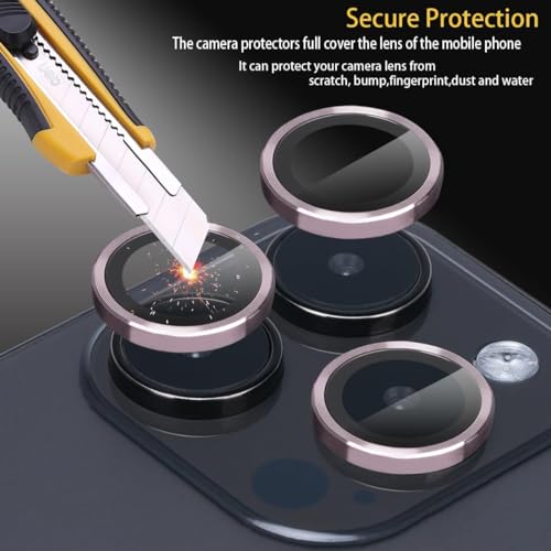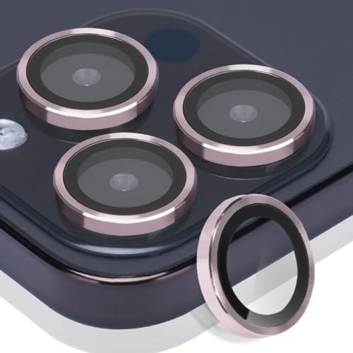 ELMO3EZZ - واقي عدسة كاميرا من الزجاج المقوى عبوة 3 قطع درجة صلابة 9 حلقي خليط الألومنيوم يناسب ايفون 13 برو وبرو ماكس وردي