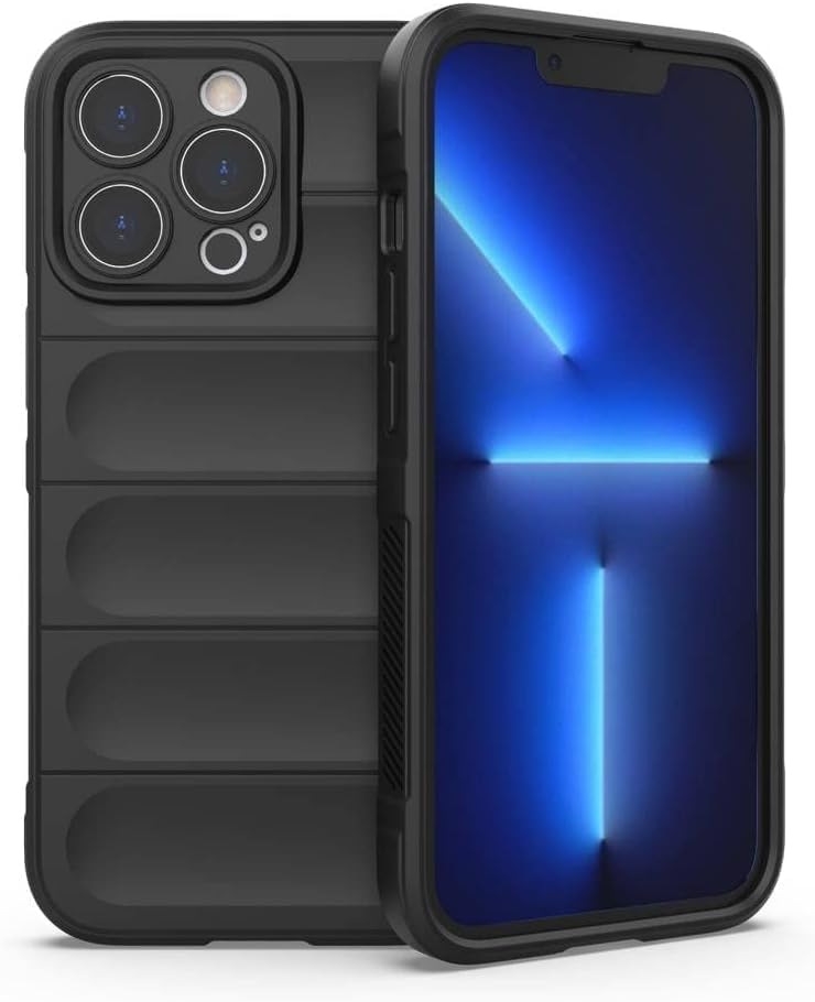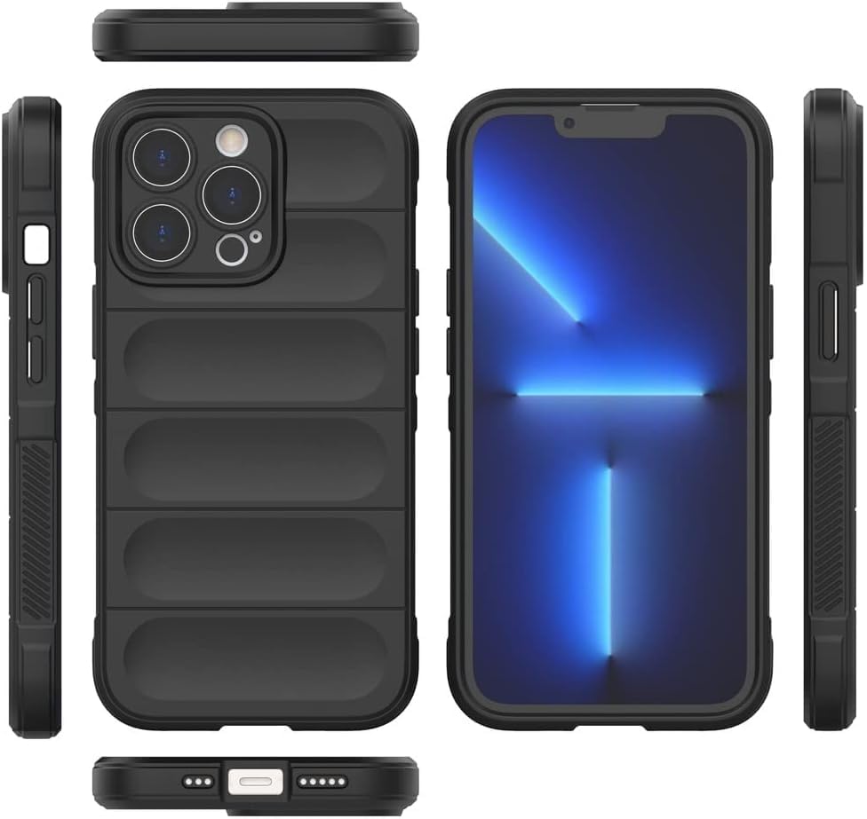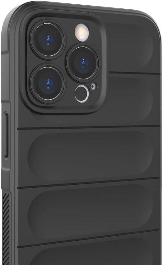 Generic - جراب مضاد للصدمات بحماية كاملة مرنة للكاميرا لموبايل ايفون 13 برو ماكس لون اسود سيليكون