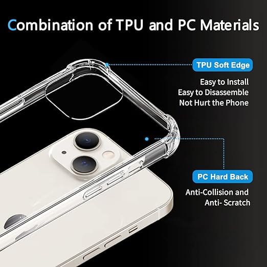 Generic - جراب شفاف لموبايل iPhone 14 للغاية مضاد للصدمات رفيع ناعم من البولي يوريثين الحراري وبزاوية معززة من السيليكون