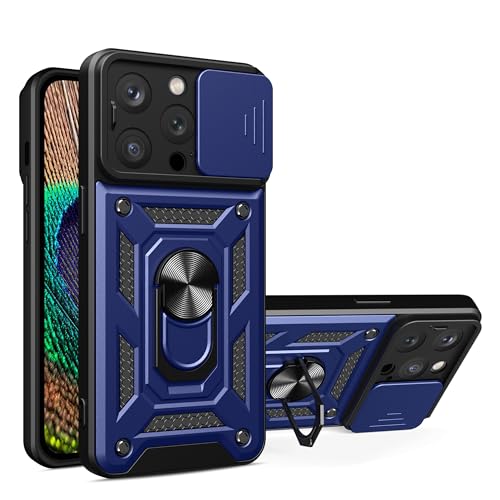 Generic - جراب حماية مضادة للصدمات بحماية للكاميرا وحلقة معدنية لموبايل ايفون 15 برو ماكس (ازرق)