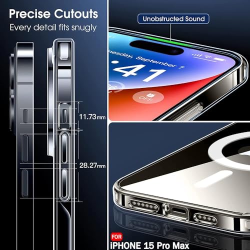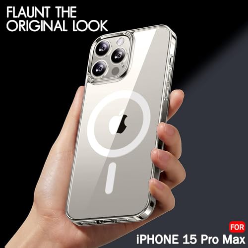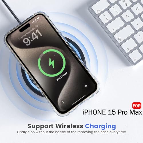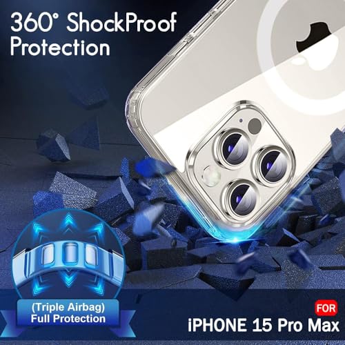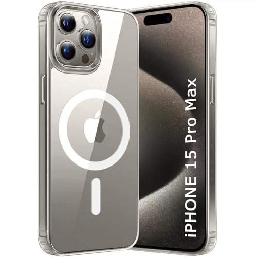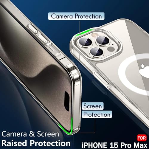 Generic - iPhone 15 pro max جراب مغناطيسي شفاف لموبايل ايفون برو ماكس متوافق مع ماج سيف موبايل رفيع للغاية وناعم من السيليكون والبولي يوريثين الحراري مضاد للصدمات ومقاوم للخدش والانزلاق