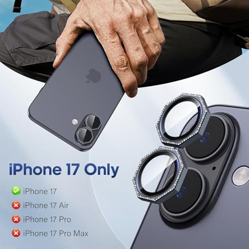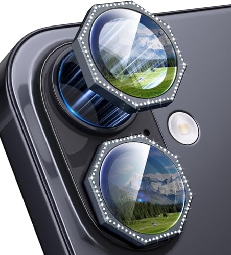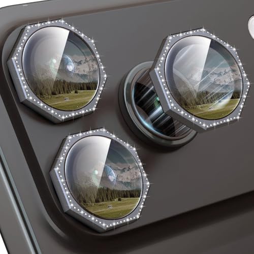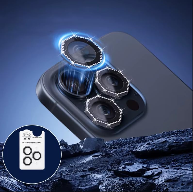 ELMO3EZZ - واقي عدسة كاميرا ايفون 16 برو / 16 برو ماكس بتصميم ماسي لامع، معدن فردي بدرجة صلابة 9، واقي شاشة كاميرا مقاوم للخدش، اكسسوارات انيقة، مناسب للحافظة (اسود)