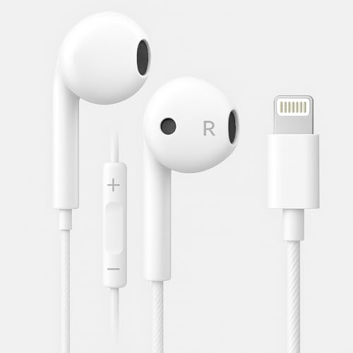 mobiwaves - سماعات اذن سلكية لايفون [معتمدة من ابل] - سماعات اذن لايتنينج مع ميكروفون مدمج - متوافقة مع ايفون 14/13/12/11/XR/8/7