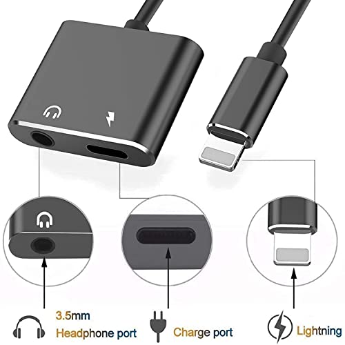 ADAYO FORYOU - محول سماعة رأس لموبابلات آيفون معتمد من آبل، محول مقبس سماعة رأس لايتنينج إلى 3.5 ملم، كابل فاصل وصوت وشاحن AUX 2 في 1 لآيفون 7/8//X/XS/XR/10/11/12/13/آي باد بلون أسود