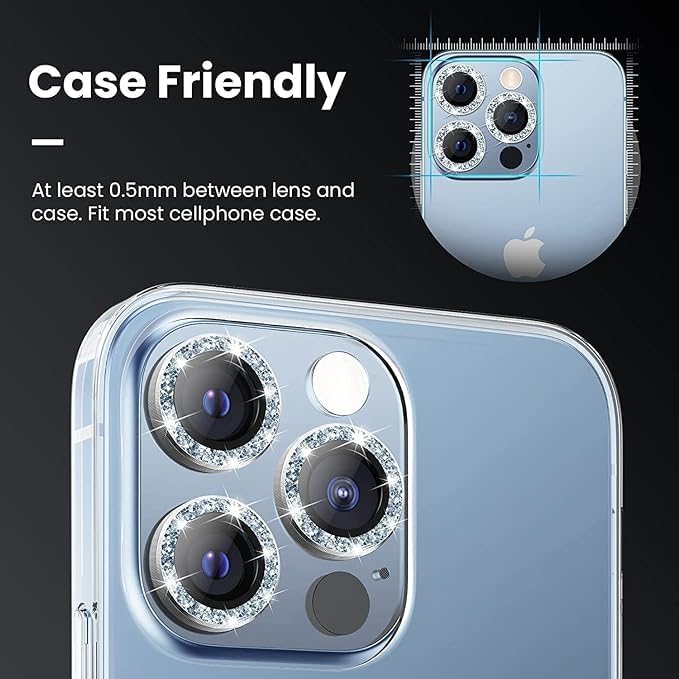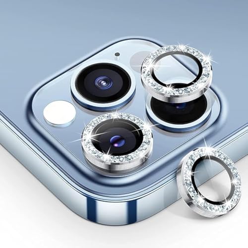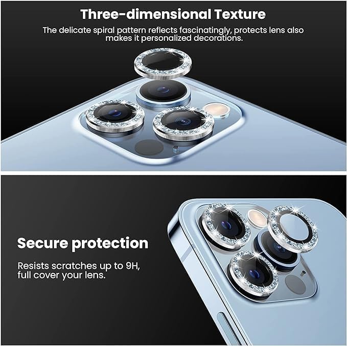 ELMO3EZZ - واقي لعدسات الكاميرا بشاشة حماية مصنوعة من الزجاج وحلقة معدنية فردية لموبايل ايفون 12 برو - 13 - ماكس أزرق دايموند المعز