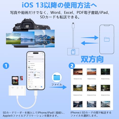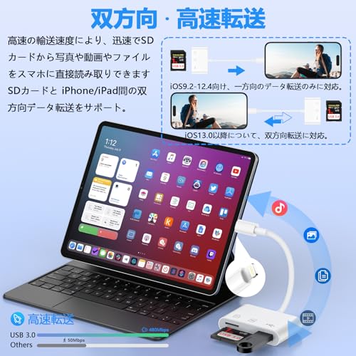 - ️【نقل بيانات عالي السرعة/ثنائي الاتجاه】قارئ بطاقة اس دي هو قارئ كابل بيانات مع شريحة الجيل الجديد، والتي يمكن أن توفر نقل البيانات بسرعة فائقة في نفس الوقت، مما يجعل أجهزتك المتصلة أكثر أمانًا واستقرارًا مع سرعة نقل البيانات من 25 ميجابايت/ثانية إلى 35 ميجابايت/ثانية، يمكنك نقل ألبومات الصور ومقاطع الفيديو والأفلام وغير ذلك المزيد ثنائي الاتجاه: يدعم كلاً من الهاتف الذكي إلى بطاقة SD / TF / ذاكرة USB وبطاقة SD / TF / محرك USB إلى الهاتف الذكي نقل البيانات سريع وسهل، يتم نقل أجهزة إصدار iOS 9.2-12.4 فقط من بطاقة SD إلى ايفون/ايباد، نظام iOS 13 أو أحدث يدعم النقل ثنائي الاتجاه ونقل المواد