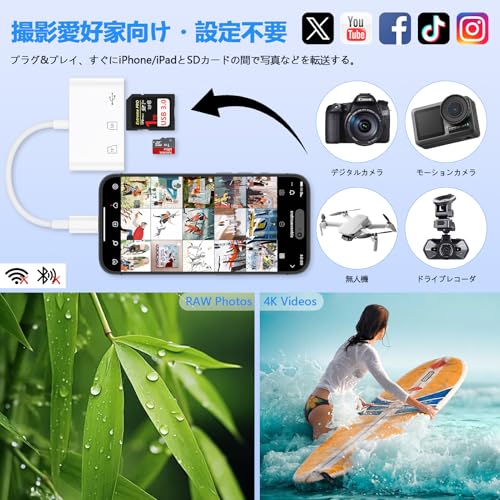GAEF - قارئ بطاقات SD لجهاز آيفون، محول 3 في 1 USB/SD/TF، معتمد من ام اف اي، قارئ بطاقة ذاكرة خارجي لايتنينج، USB 3.0 ثنائي الاتجاه، نقل سريع للبيانات، بدون إعداد، كاميرا تعمل بالطاقة من لايتنينج إلى SD