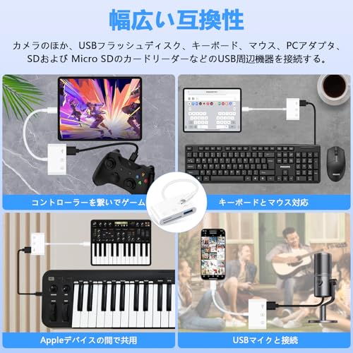 - (توافق واسع): متوافق مع آيفون 14 برو / 14 بلس / 13 / 13 برو / 13 برو ماكس / 12 برو 12 / 11 / Xs 8 / 7 / 6 / 5 / 5S / SE واي باد آير / ميني / برو ويدعم صيغ الصور القياسية وتنسيقات الفيديو JPER، RAW، SD، HD من التابلت إلى محول USB يمكنك أيضًا توصيل الأجهزة الطرفية USB مثل الكاميرا والماوس ولوحة المفاتيح ومحرك أقراص USB وقارئ البطاقات وما إلى ذلك. -