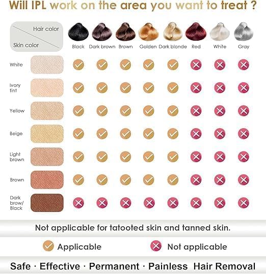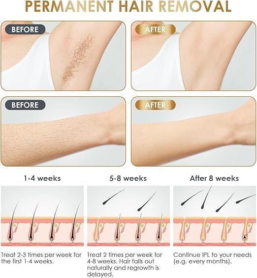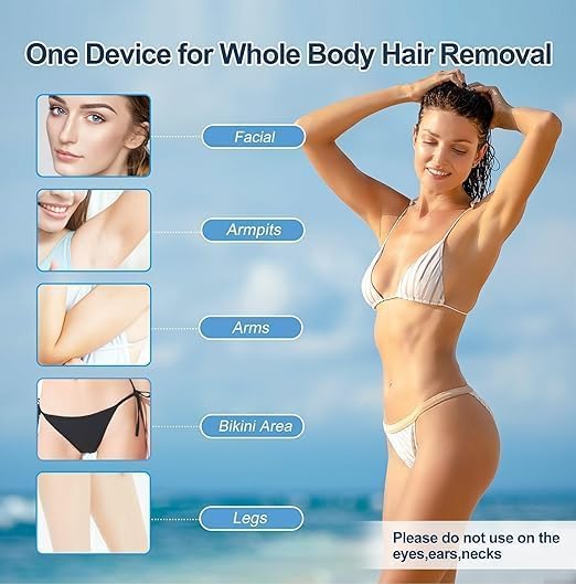 Generic - جهاز إزالة الشعر بالليزر بالنبض الضوئي في المنزل للنساء والرجال بدون ألم للوجه والشفاه ومنطقة البكيني وخط الإبطين والساقين والذراعين والوجه والظهر والجسم بالكامل