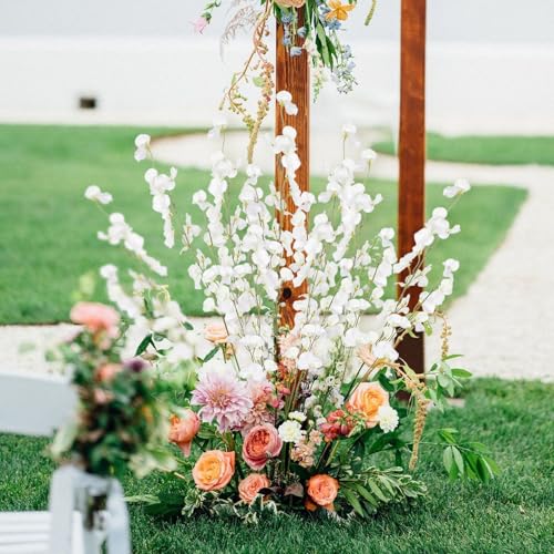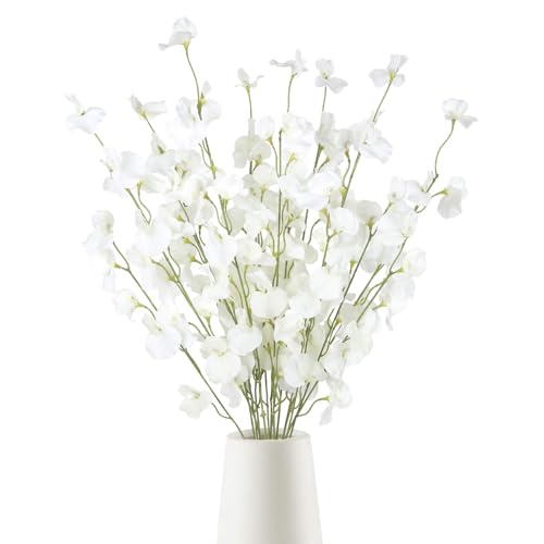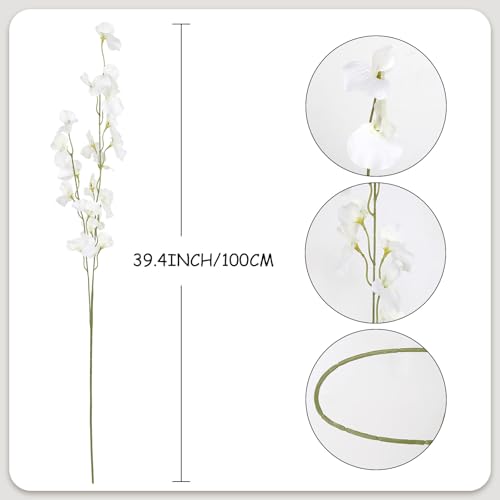 IPOPU - ايبوبو 8 قطع من زهور البازلاء الحلوة البيضاء الاصطناعية بطول 39 انش، زهور صناعية من الحرير الصناعي بجذع طويل للمزهرية الطويلة وحفلات الزفاف وديكور المنزل (ابيض)