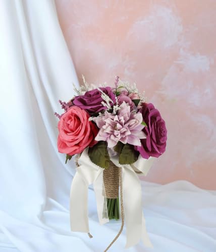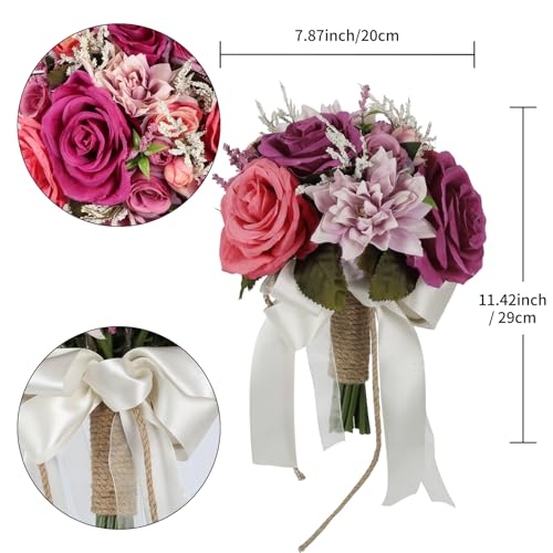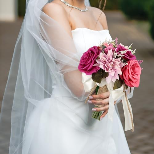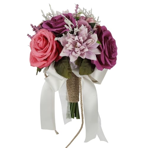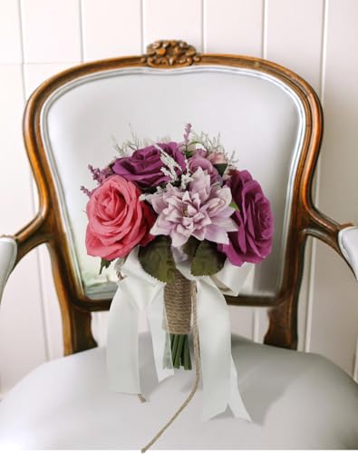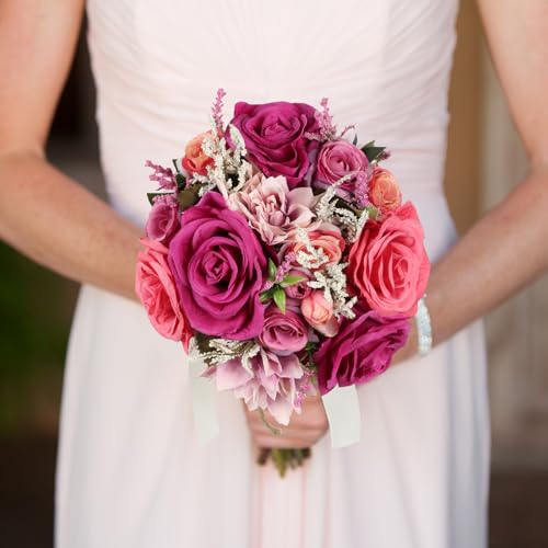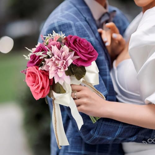 IPOPU - ايبوبو باقة زهور زفاف صناعية فوشيا مع الماس لحفلات الزفاف والخطوبة والذكرى السنوية وحفلات التخرج وعيد الحب