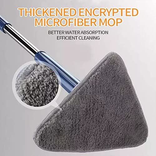 IPQYIHF - مساحة موب قابلة للدوران 360 درجة مع غيارين بديلين من المايكروفايبر لتنظيف الغبار ومقبض طويل، مساحة موب للغبار قابلة للتمدد على شكل مثلث مع مقبض طويل لتنظيف الجدار من ايبكيهيف- ازرق
