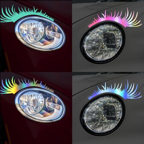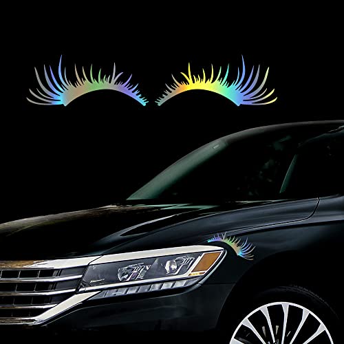 Iprokiu - زوج واحد من ملصقات رموش السيارة الامامية من الفينيل من ايبروكيو، ستيكر لاصق لجسم السيارة والنافذة وممتص الصدمات واللابتوب والشاحنة، ستيكر لاصق مضاد للماء لتزيين المصابيح الامامية (لون مبهر) عدد 1