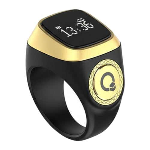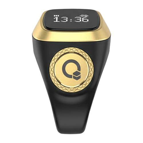 TreasureCave - خاتم ذكي للذكر والتسبيح، خاتم ذكي مقاوم للماء مع عداد رقمي وتذكير بالاهتزاز، ساعة منبه للأذان للجنسين من آي قبلة (18 ملم، لون أسود)