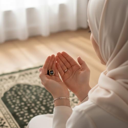 - *تذكير بوقت الصلاة: صُمم خاتم عداد التسبيح الذكي لتلبية احتياجات المسلمين للتسبيح والتذكير بوقت الصلاة. يمكن للخاتم العداد أن يبقيك متزامنًا مع موبايلك من خلال تطبيق للموبايل والذي يخطرك بأوقات الصلاة خمس مرات في اليوم، مما يساعدك على الحفاظ على روتين صلاة متسق ومنضبط طوال اليوم.