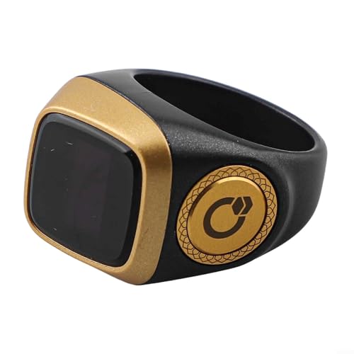 LVYXON - خاتم التسبيح الذكي من اي قبلة، عداد تسبيح رقمي مقاوم للماء مع تذكير بالاهتزاز وتنبيهات مواقيت الصلاة للمسلمين، مقاس 22 ملم، لون أسود