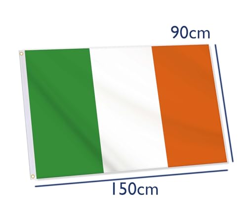 NOVDEK - علم ايرلندا، علم ايرلندي 3 × 5 قدم، 36 × 60 انش كبير رقمي بطباعة مزدوجة متينة من البوليستر السميك 150D مع حلقتين نحاسيتين