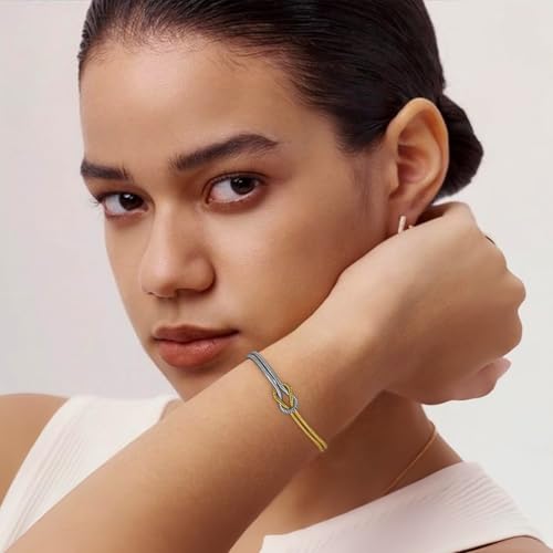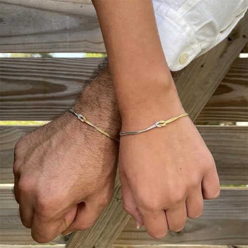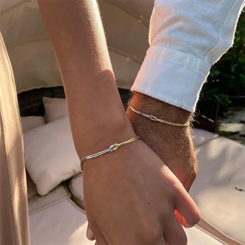 Irikdescia - سوار عقدة بالفضة والذهب عيار 18 قيراط، أساور شريكين، أساور للأزواج، هدايا للأزواج، سوار مطابق للعلاقات الصداقة أو العاطفية من ايريكديسيا، لونين، قطعتان