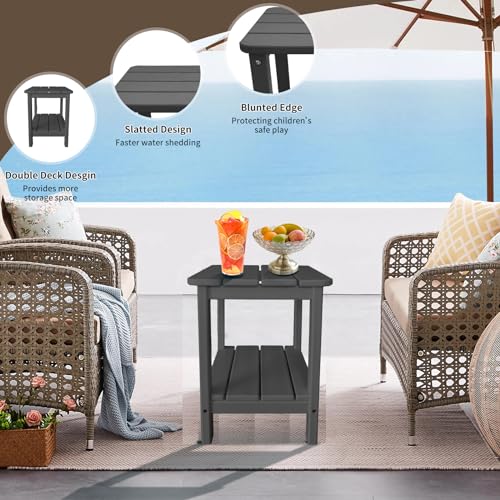IRON BILL - طاولة جانبية اديرونداك للاستخدام الخارجي من ايرون بيل، مصنوعة من البولي ايثيلين عالي الكثافة، لون رمادي