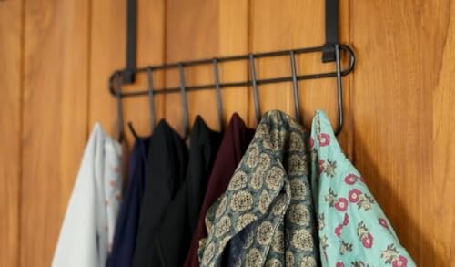 Generic - خطاف مطبخ حديدي فني بدون علامات أو مسامير، تصميم متعدد الصفوف، يحتوي على 5 خانات لتخزين المطبخ بشكل مرتب، باللون الأسود. (1 قطعه)