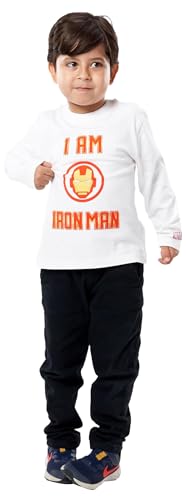 Disney - تيشرت بأكمام طويلة مطبوع بعبارة IRON-MAN، لون أبيض، مناسب لعمر من 2-3 سنوات