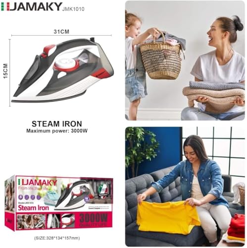 Generic - مكواة بخار 3000 وات متوافق مع جماكى قاعدة من السيراميك غير قابل للالتصاق مع خاصية التنظيف الذاتى والتحكم فى درجات الحرارة -