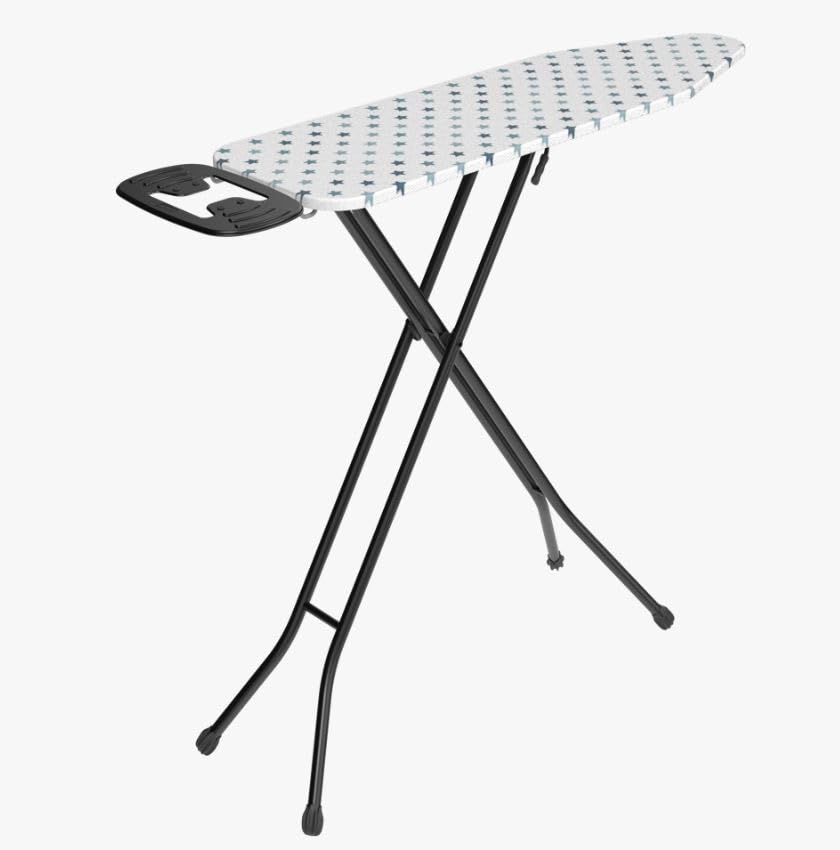 - هيكل قوي: يوفر الإطار المعدني الأسود المتين دعمًا ثابتًا أثناء الكي، مع أقدام غير قابلة للانزلاق لمنع الحركة وحماية أسطح الأرضيات