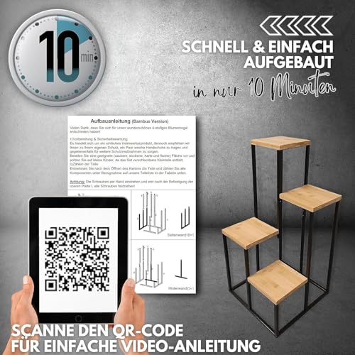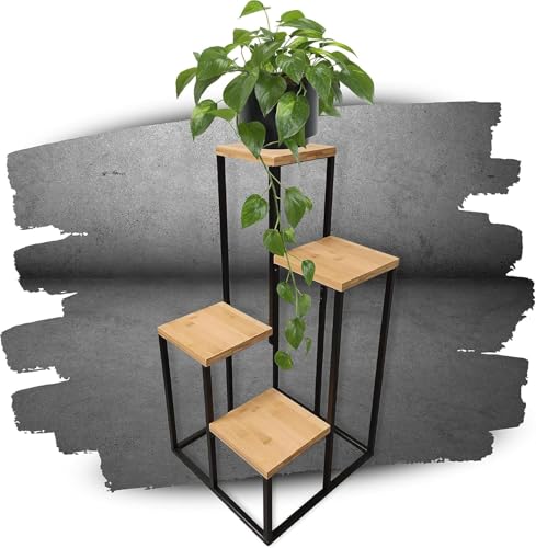 Generic - حامل تسلق للنباتات من ايرون وود مع 4 درجات مصنوعة من الخيزران على إطار معدني، حامل زهور للاستخدام الداخلي والخارجي، رف نباتات بتصميم صناعي، نمط طبيعي/ أسود