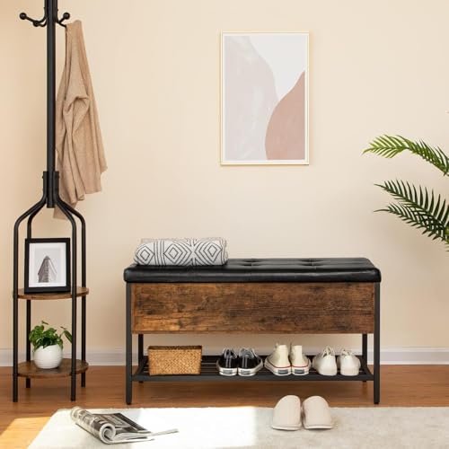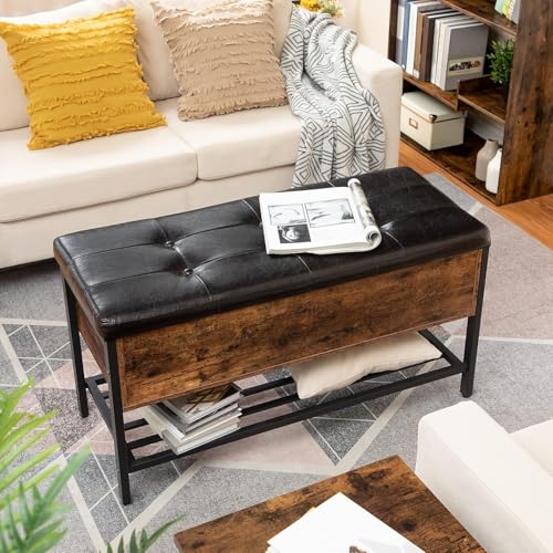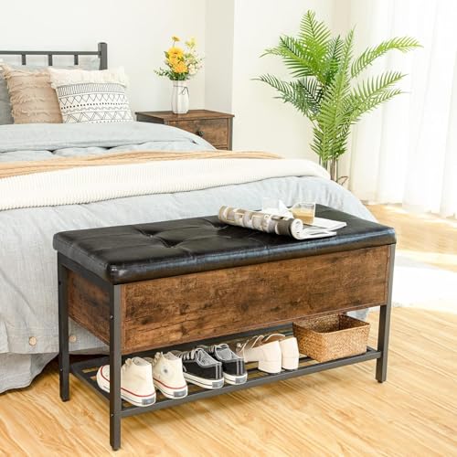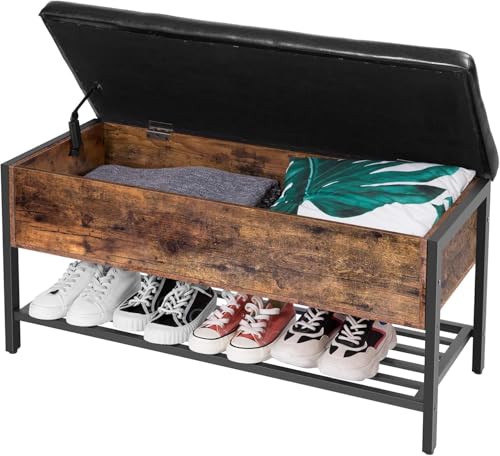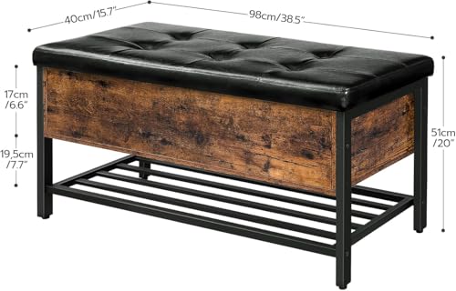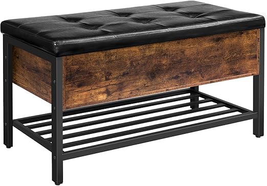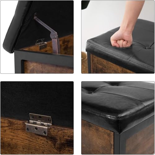 Generic - مقعد تخزين عثماني، مقعد لتخزين الأحذية مع مقعد مبطن ورف معدني، يستخدم كصندوق تخزين للألعاب بغطاء قابل للطي،مقعد لجانب السرير لغرفة النوم والرواق وغرفة المعيشة، بني ريفي وأسود من ايرون وود