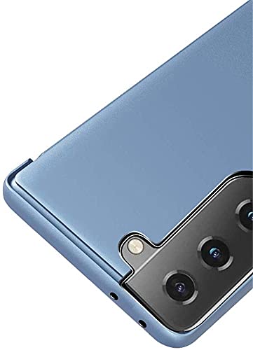 ISADENSER - جراب حماية شفاف قابل للطي لموبايل سامسونج جالاكسي S21 FE من اسادينسر بتصميم مرآة مكياج جليتر رفيع مضاد للصدمات تغطية كاملة 360 درجة شبكة الجيل الخامس 5G 2021، ازرق عاكس، جلد صناعي