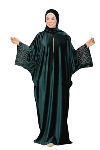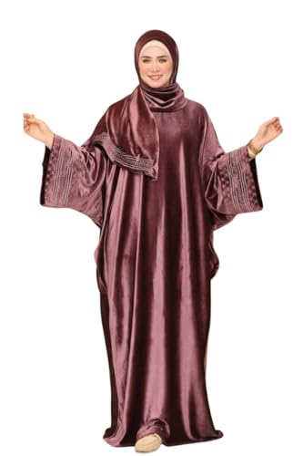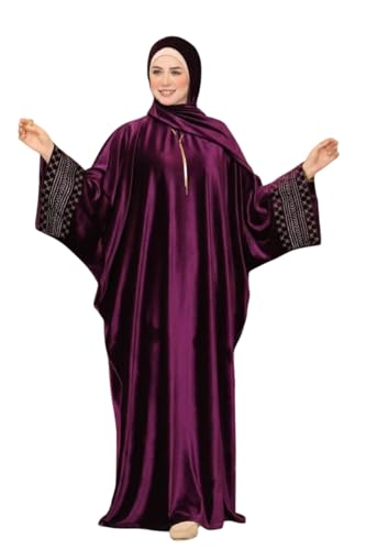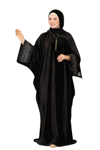 Generic - اسدال قطيفة بليسه بتلبيسة ملتصقة بتصميم سادة و أكمام واسعة منقوشة ( فري سايز و بألوان متعددة )