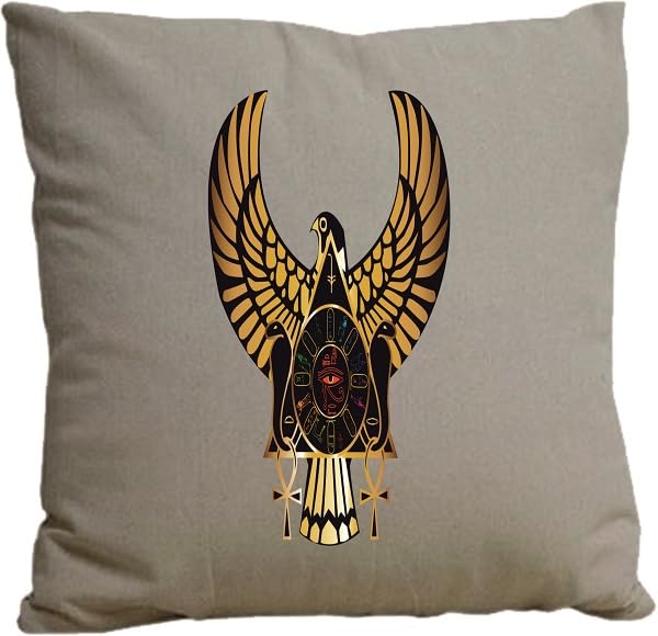 Generic - كيس مخدة من الكتان مطبوع عليه نسر مصري قديم من إيزيس - 40 × 40 سم بسوستة مخفية