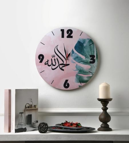 Generic - ساعة حائط دائرية بالخط العربي الإسلامي، تصميم ألوان مائية وردي وأزرق مخضر (60 سم)